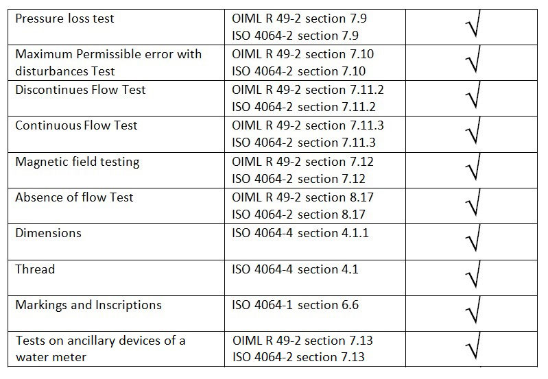 Water meter tests according to OIML R 49 & ISO 4064